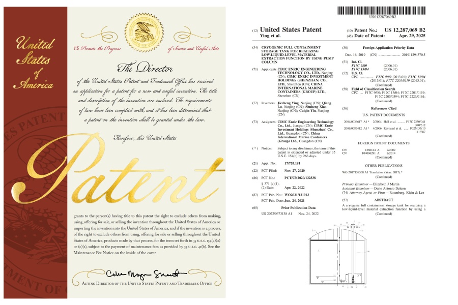 近日,中集工程科技“一種利用泵柱實現(xiàn)低液位物料抽提功能的低溫全容罐”榮獲美國專利授權。此項技術標志著低溫儲罐領域的一項重大突破,將現(xiàn)有低溫全容罐中泵柱無法直接抽提的低液位物料,以生產(chǎn)規(guī)模的流量抽提出來...