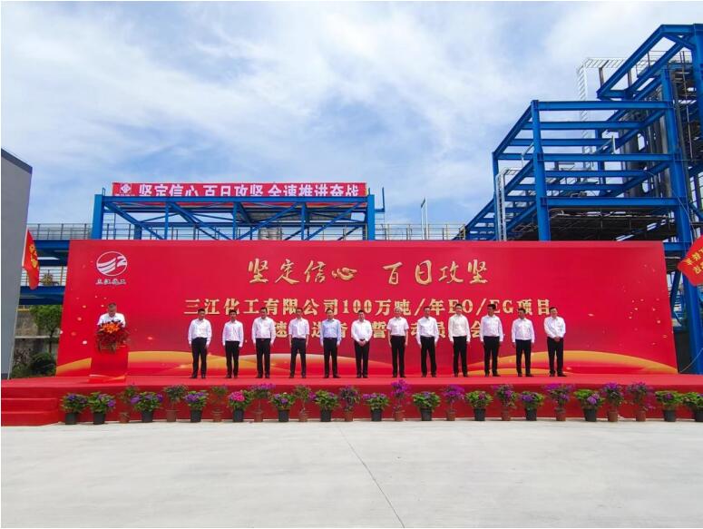 ——三江化工100萬噸/年EO/EG項(xiàng)目全速推進(jìn)奮戰(zhàn)誓師大會(huì)文/張銳 圖/龔曉菲 2022年6月8日上午,為響應(yīng)嘉興市和嘉興港區(qū)推出的“十大百日攻堅(jiān)行動(dòng)”方案,三江化工第一時(shí)間舉行了“三...